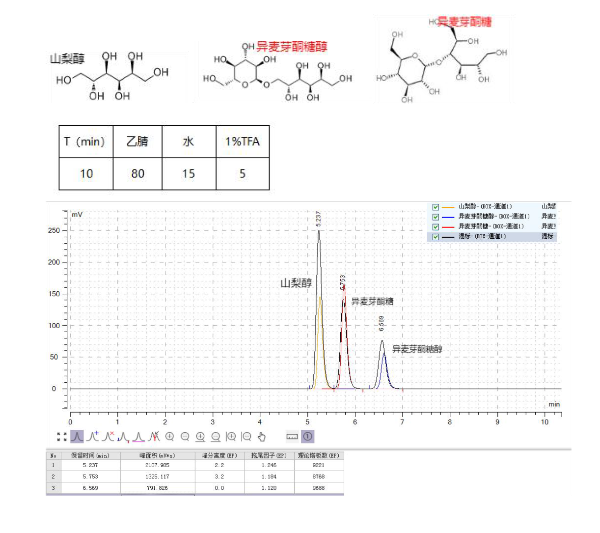 Comixsil RP-100 HPLC-UV 法直接分析有機(jī)酸-丁酸戊酸已酸庚酸辛酸 色譜柱:Comixsil RP-100 3μ 150x4.6mm 貨號(hào):FMF-100R3-EONU 流速:1mL/min 檢測(cè):UV 210nm 柱溫:25oC 進(jìn)樣量:5uL 流動(dòng)相:乙腈:水:硫酸(20%:75%:5%) 色譜圖: ![]() |